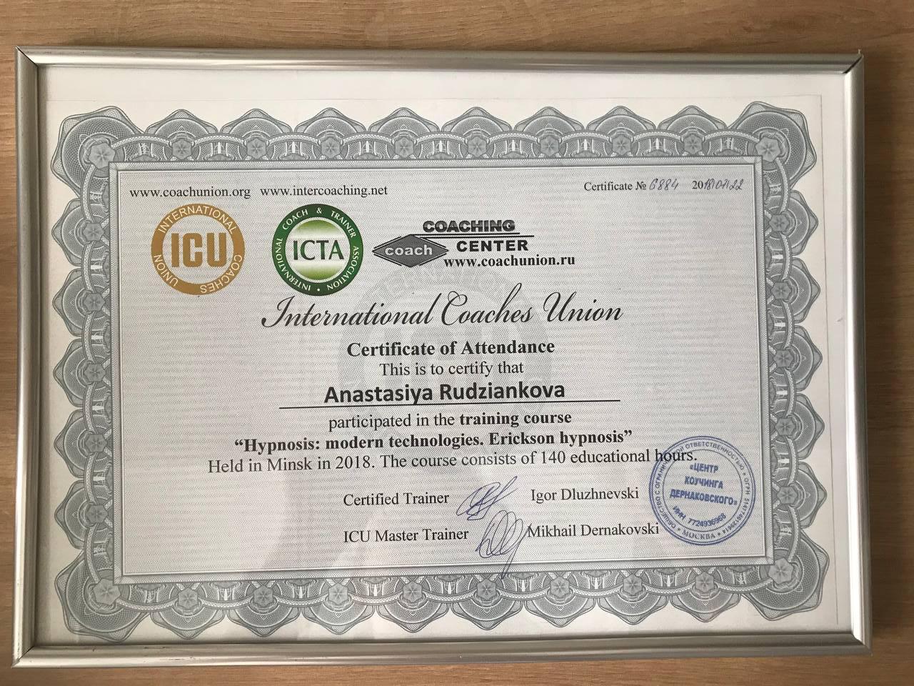 Прошла обучающий курс «Гипноз: современные технологии. Эриксоновский гипноз»